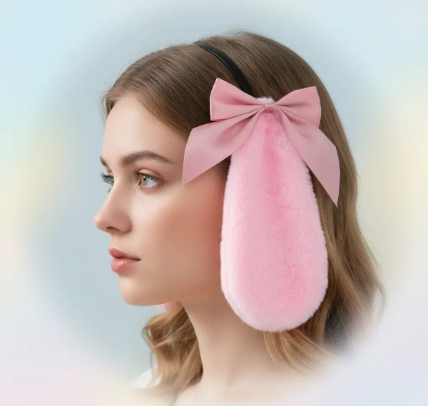 Orejas de conejo en peluche blanco con cintas de raso - son con hebillas