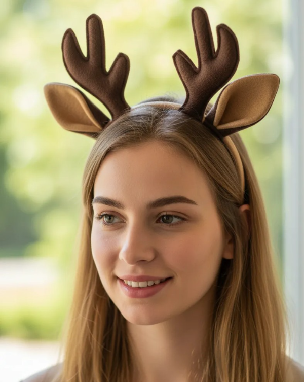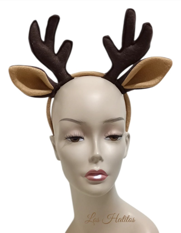 Vincha forrada para niños o adultos. orejas de ciervo en paño marron y beige. cola con gancho de metal.