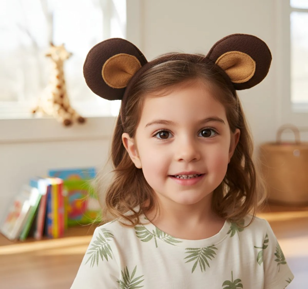 Vincha forrada para niños o adultos. conjunto de oso pardo. El color de Paño puede variar de tono según partida de tela del distribuidor