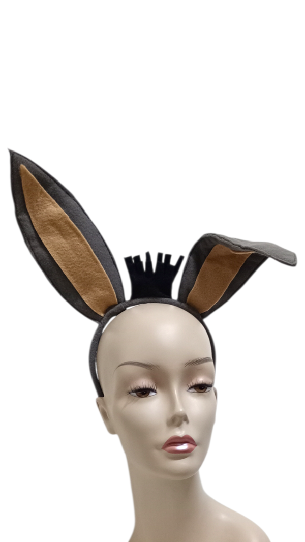 Vincha de BURRO en Paño con alambre en orejas para doblar. color de interior de orejitas : beige. Vincha para todas las edades.
