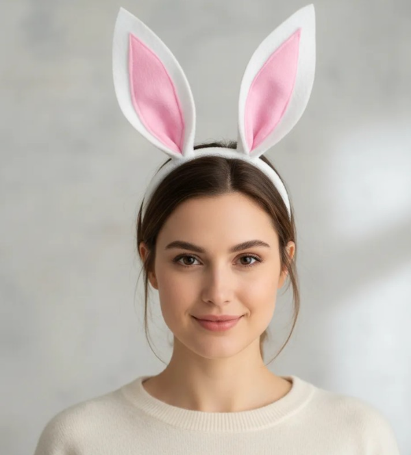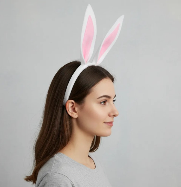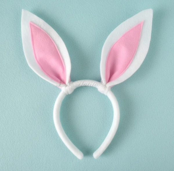 Vincha forrada para niños o adultos. orejas de conejo en paño blanco con interior rosa, las orejas se doblan.