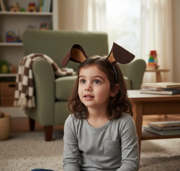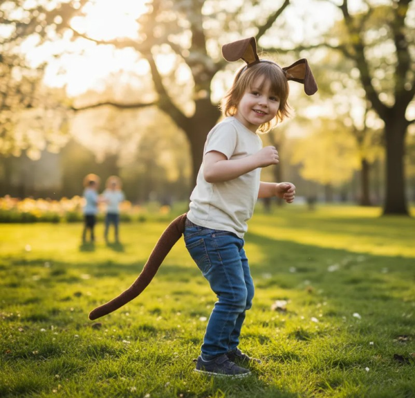 ** Cola para niños menores de 9 años 45 cm de largo y alfiler de gancho ( se puede reemplazar por elástico) .
