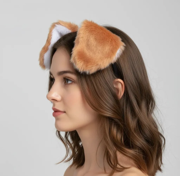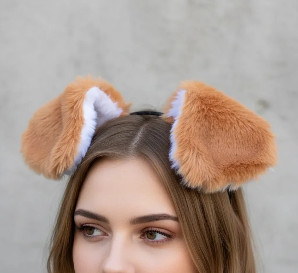 Vincha de Perro en Peluche con alambre en orejas para doblar. Las orejas medianas del modelo de la primera foto mide 17 cm de largo (desde la vincha hasta la punta de la oreja)