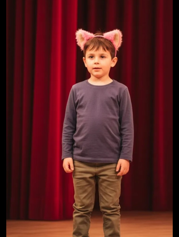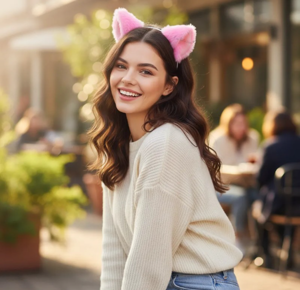 vincha de gato en color rosa claro, interior rosa con vincha de metal forrado