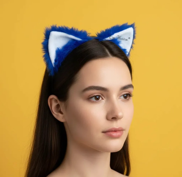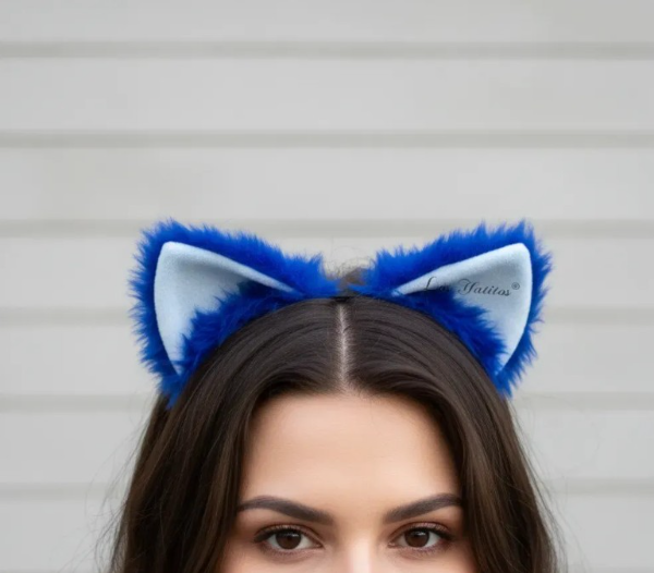 - 1 orejas en peluche azul en vincha de metal forrado en color negro